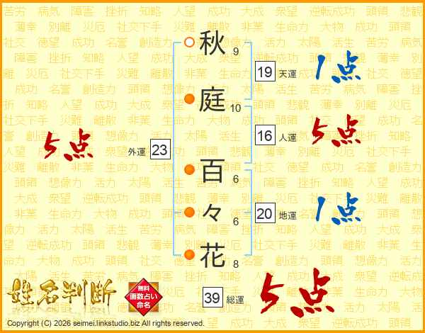 秋庭百々花さんの総運は39画の5点!