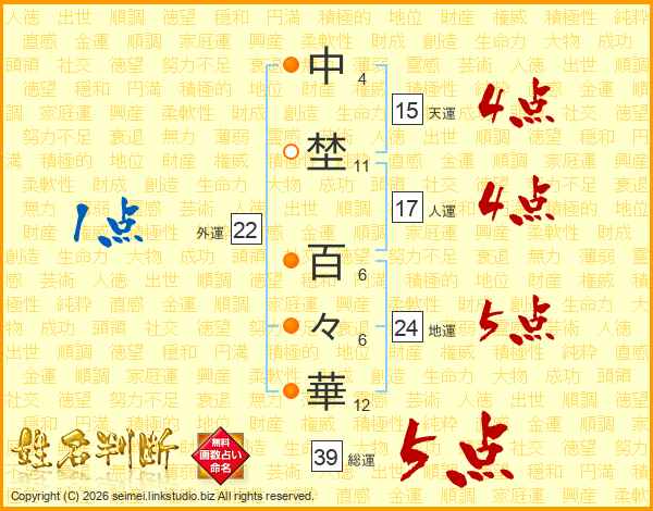 中埜百々華さんの総運は39画の5点!
