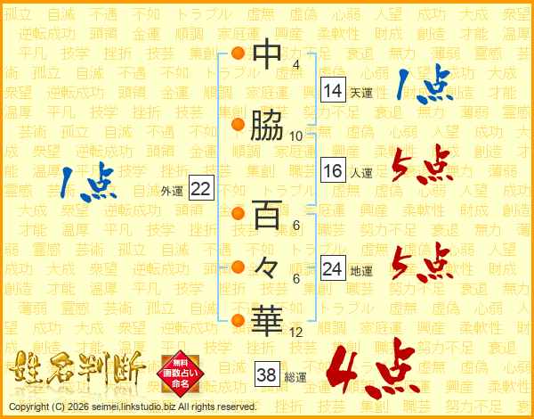 中脇百々華さんの総運は38画の4点!