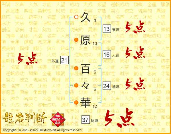 久(3画)原(10画) 百(6画)々(6画)華(12画)