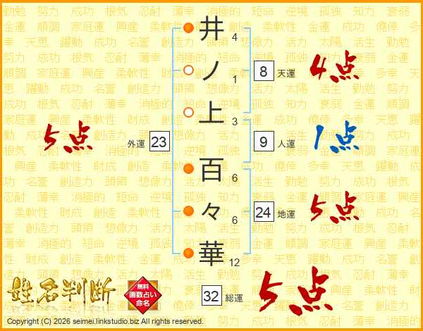 井ノ上百々華さんの総運は32画の5点!