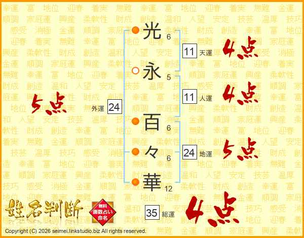 光(6画)永(5画) 百(6画)々(6画)華(12画)