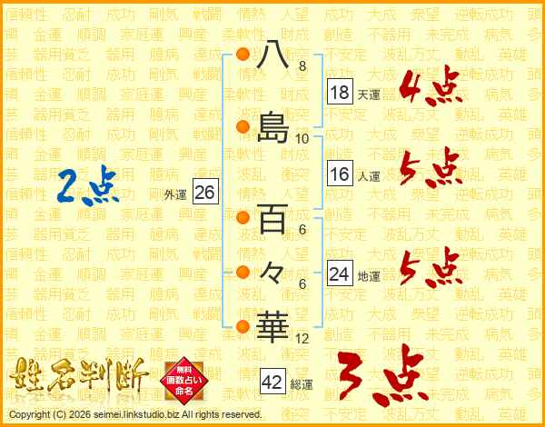 八(8画)島(10画) 百(6画)々(6画)華(12画)