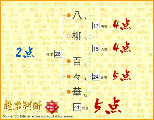 八(8画)柳(9画) 百(6画)々(6画)華(12画)