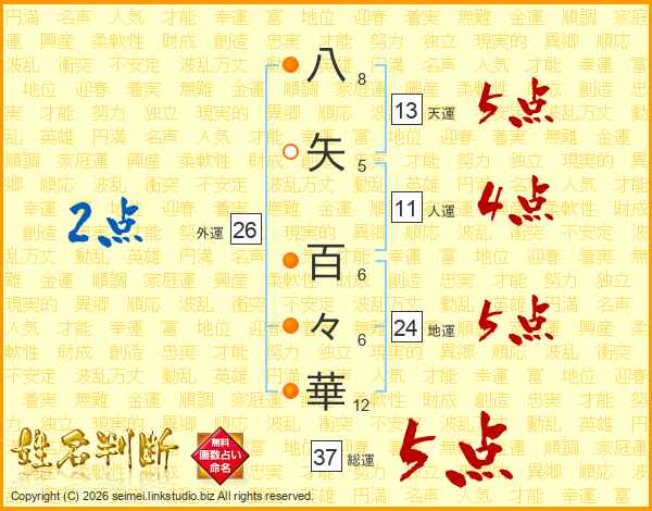 八矢百々華さんの総運は37画の5点!