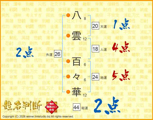 八雲百々華さんの総運は44画の2点!