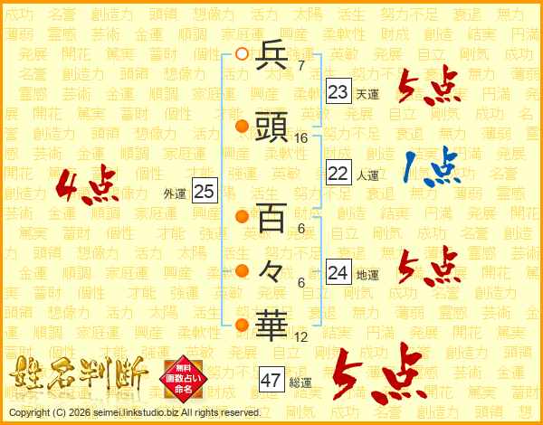 兵頭百々華さんの総運は47画の5点!
