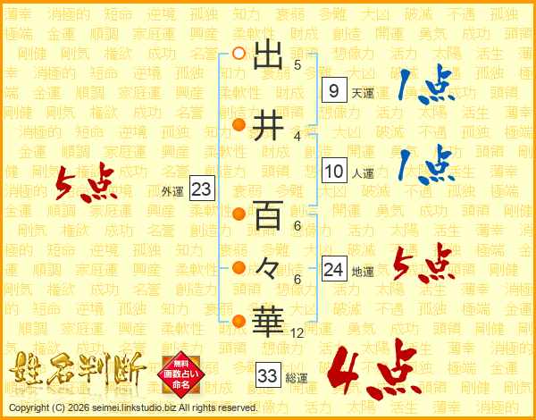 出(5画)井(4画) 百(6画)々(6画)華(12画)