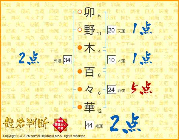 卯野木百々華さんの総運は44画の2点!