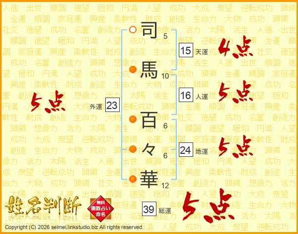 司馬百々華さんの総運は39画の5点!