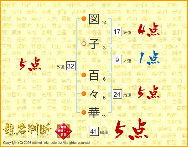 図(14画)子(3画) 百(6画)々(6画)華(12画)