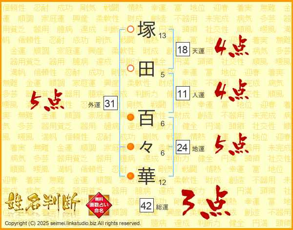 塚田百々華さんの外運は31画の5点!