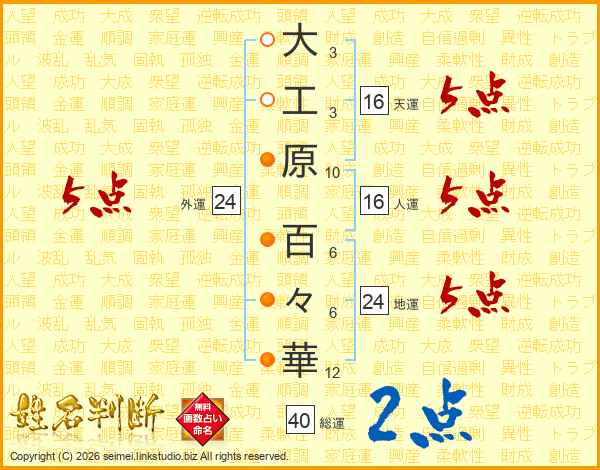 大工原百々華さんの外運は24画の5点!