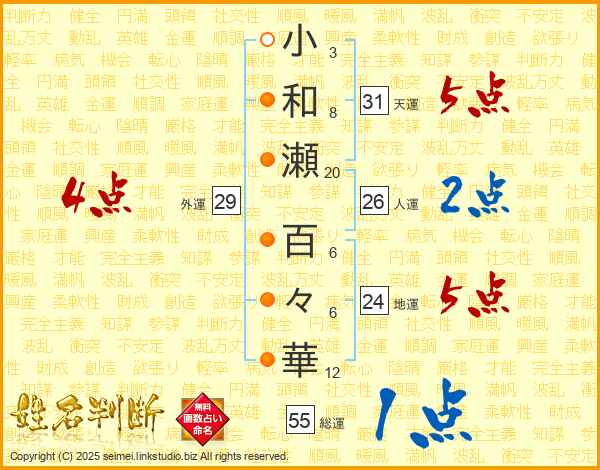 小和瀬百々華さんの外運は29画の4点!