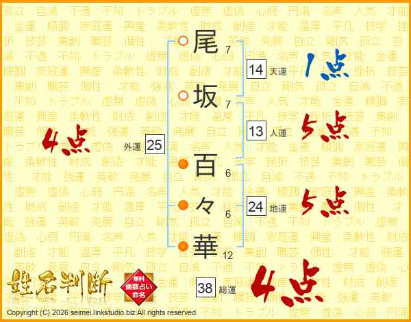 尾坂百々華さんの天運は14画の1点!