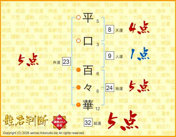 平(5画)口(3画) 百(6画)々(6画)華(12画)