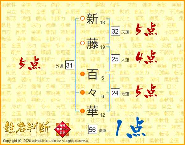 新藤百々華さんの外運は31画の5点!