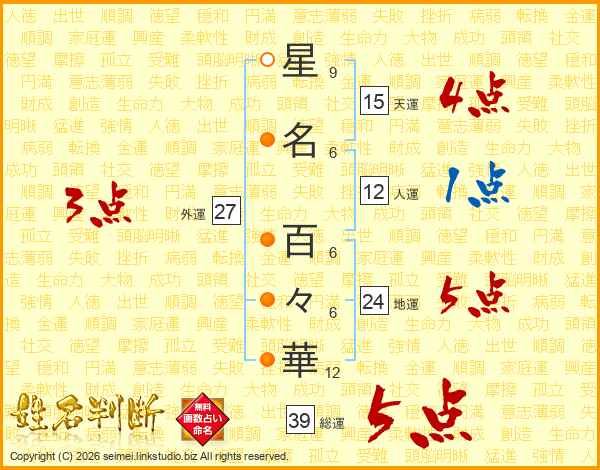 星名百々華さんの総運は39画の5点!