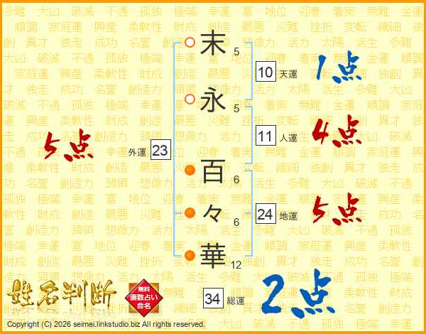 末(5画)永(5画) 百(6画)々(6画)華(12画)
