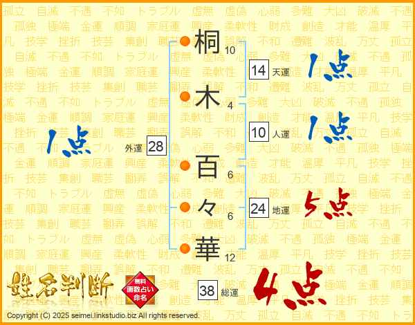 桐(10画)木(4画) 百(6画)々(6画)華(12画)