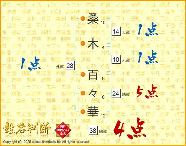 桑(10画)木(4画) 百(6画)々(6画)華(12画)