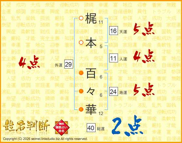 梶(11画)本(5画) 百(6画)々(6画)華(12画)