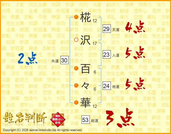 椛沢百々華さんの総運は53画の3点!