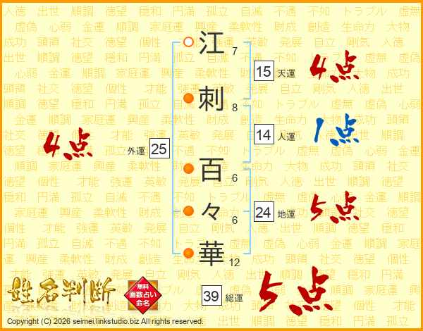江刺百々華さんの総運は39画の5点!