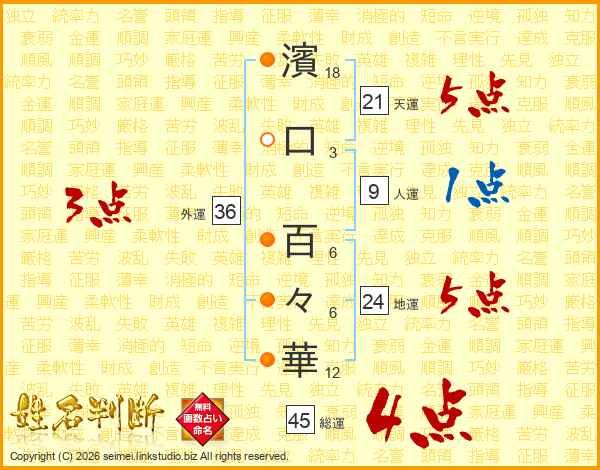 濱口百々華さんの地運は24画の5点!