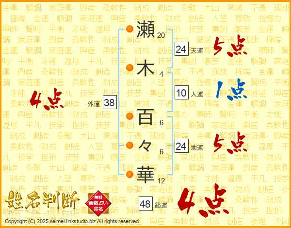 瀬木百々華さんの天運は24画の5点!
