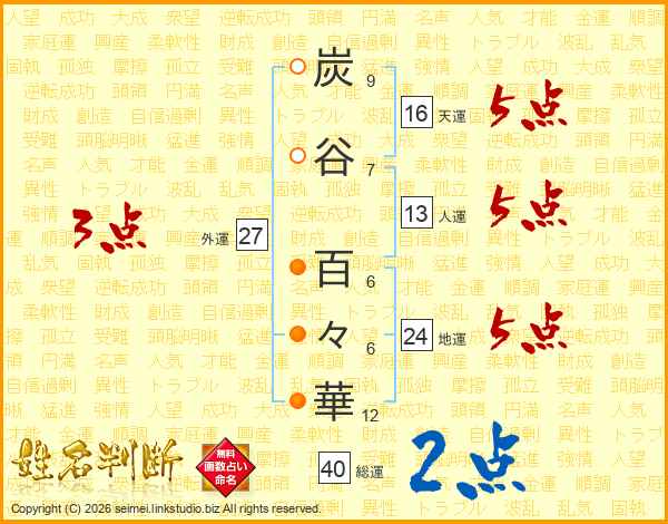 炭谷百々華さんの人運は13画の5点!