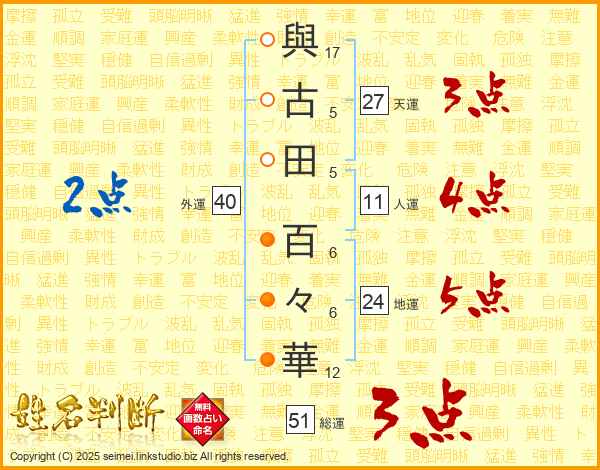 與(17画)古(5画)田(5画) 百(6画)々(6画)華(12画)
