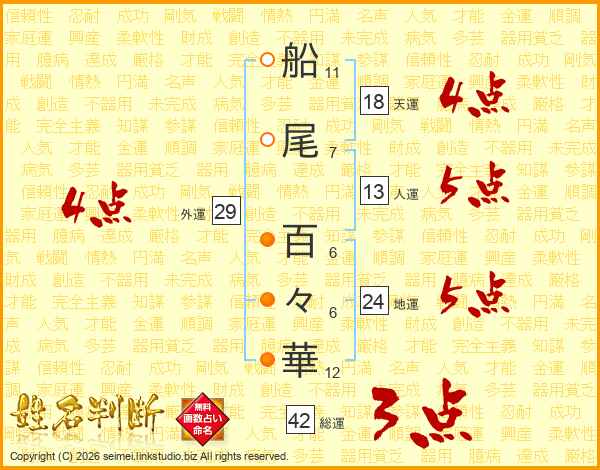 船(11画)尾(7画) 百(6画)々(6画)華(12画)