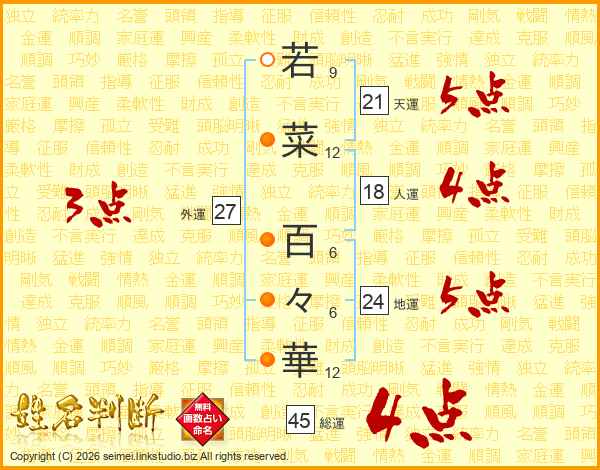 若菜百々華さんの総運は45画の4点!