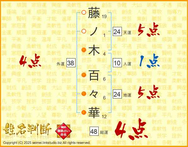 藤ノ木百々華さんの総運は48画の4点!