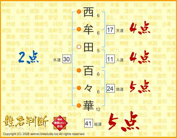 西牟田百々華さんの天運は17画の4点!