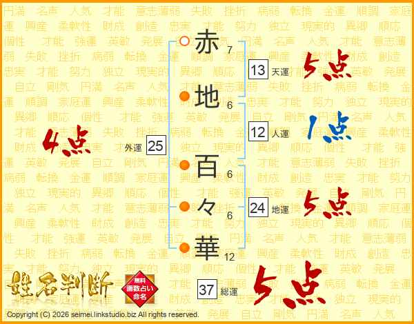 赤地百々華さんの総運は37画の5点!