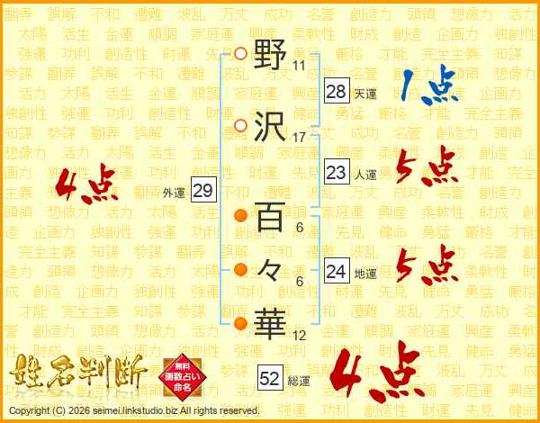 野沢百々華さんの総運は52画の4点!
