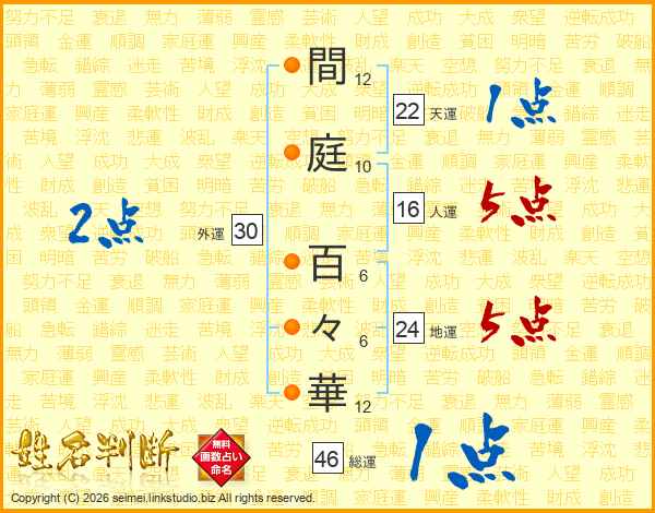 間庭百々華さんの総運は46画の1点!