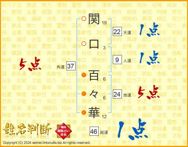 関口百々華さんの外運は37画の5点!