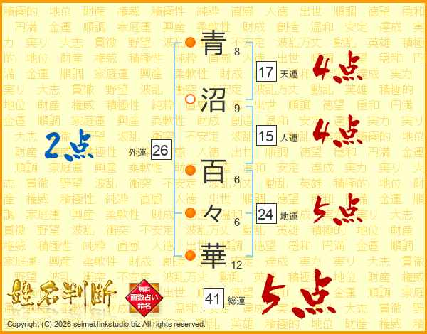 青沼百々華さんの地運は24画の5点!