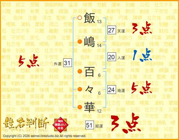 飯嶋百々華さんの外運は31画の5点!