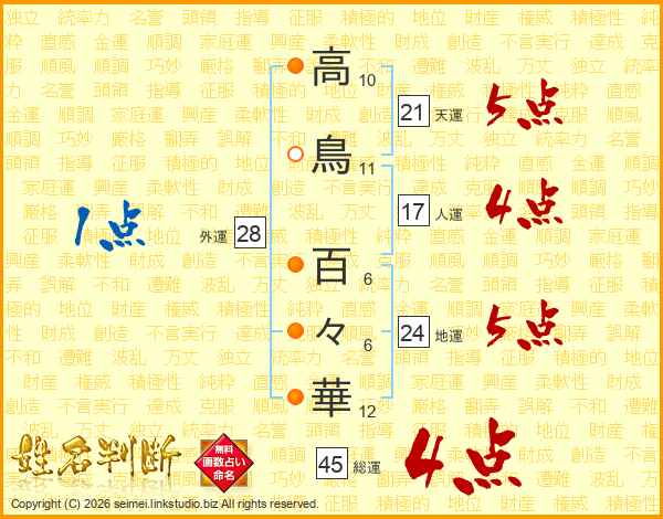 高鳥百々華さんの総運は45画の4点!