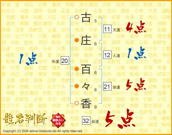 古庄百々香さんの総運は32画の5点!