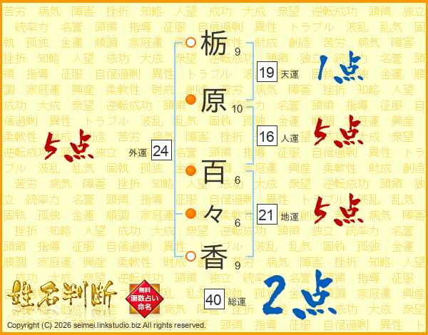 栃原百々香さんの総運は40画の2点!