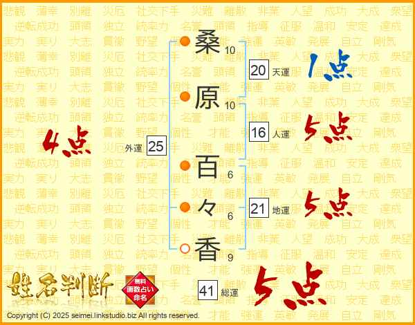 桑(10画)原(10画) 百(6画)々(6画)香(9画)