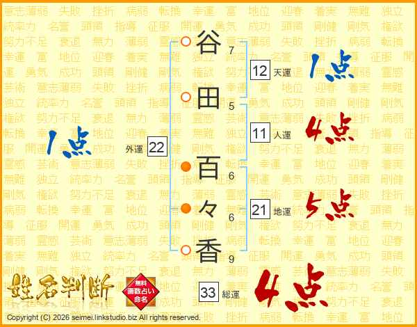 谷田百々香さんの総運は33画の4点!