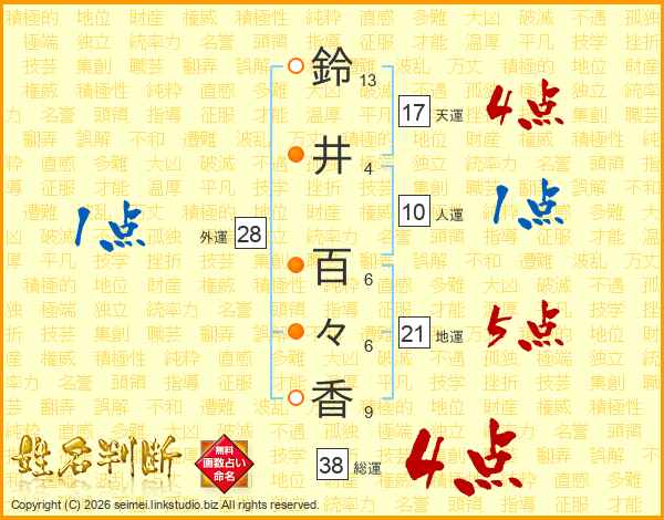 鈴井百々香さんの総運は38画の4点!