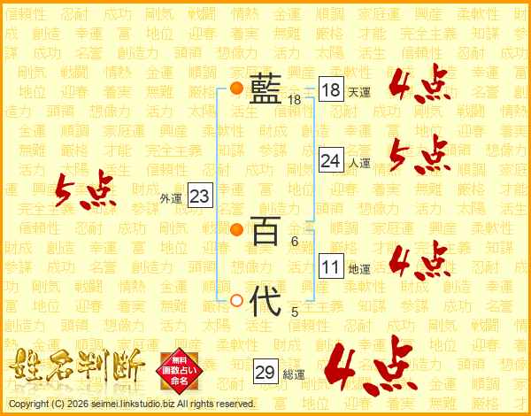 藍百代さんの天運は18画の4点!