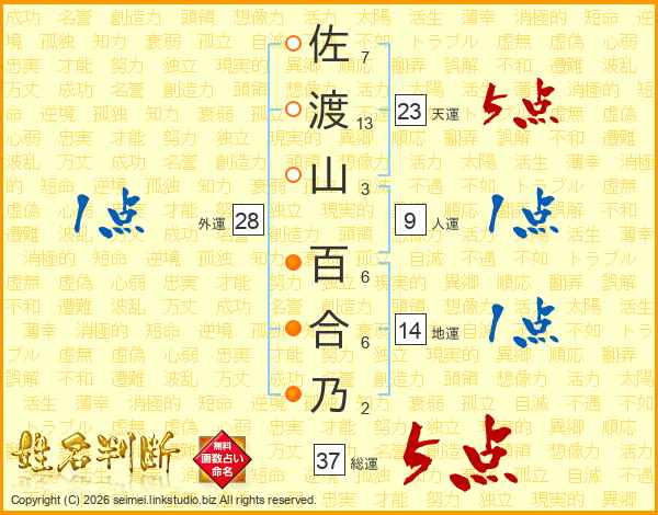 佐渡山百合乃さんの総運は37画の5点!